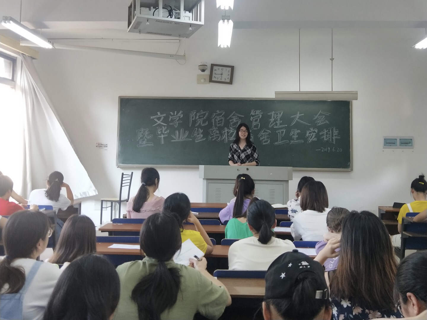 本网讯(文学院 施奕、汪鹏)为营造干净整洁的宿舍文化氛围,帮助2019届毕业生顺利离校,6月18日至25日,由文学院党总支副书记严双、宿舍管理辅导员施奕、全体毕业生辅导员牵头,文学院团学会宿管部、自治委就毕业生宿舍卫生管理工作进行了全面部署、认真执行,协助毕业生文明离寝、安全离校,确保宿舍环境恢复整洁,让全体毕业生在劳动中体会离校前的文明最后一课,给在校师生留下美好印象。
