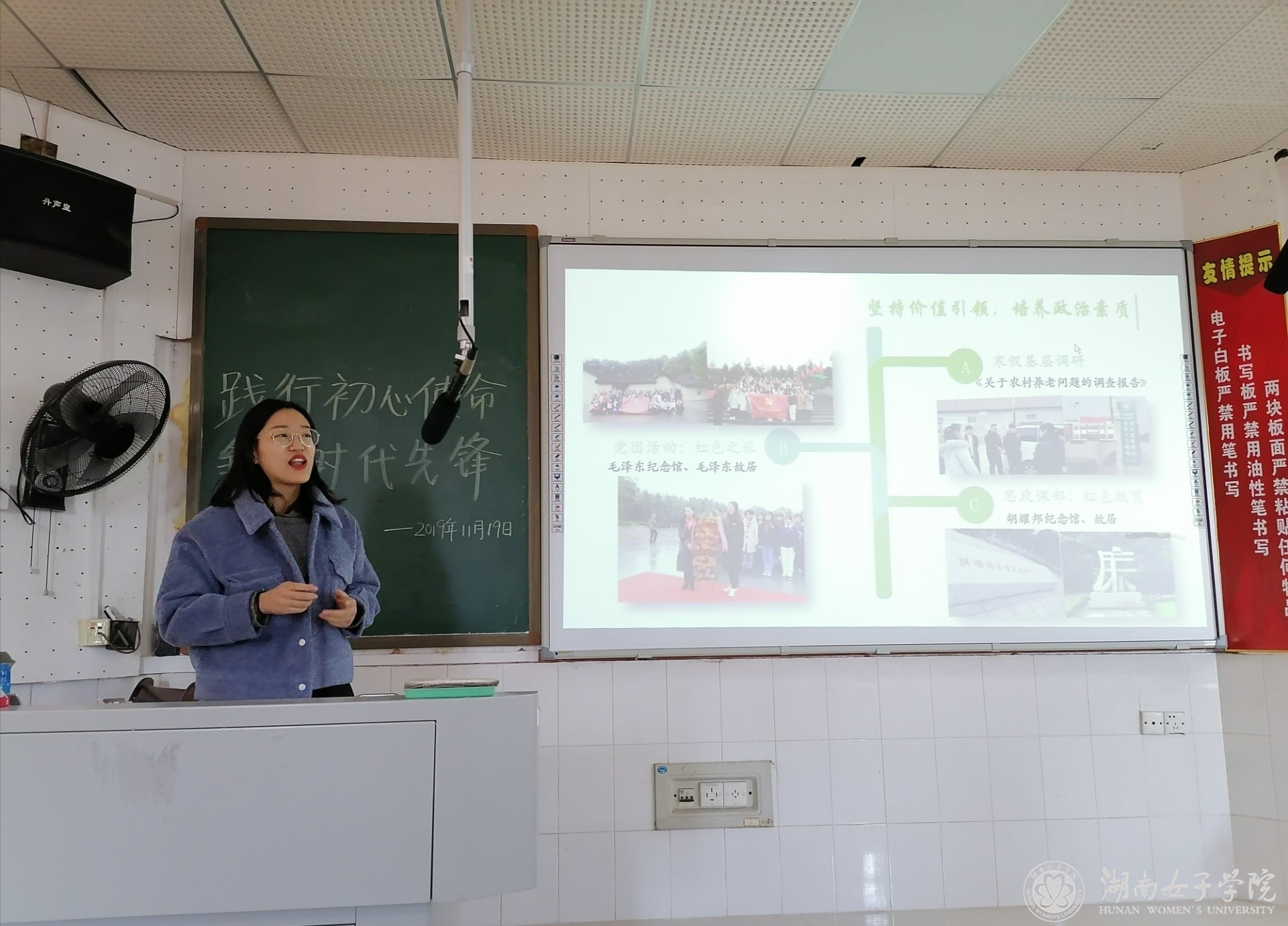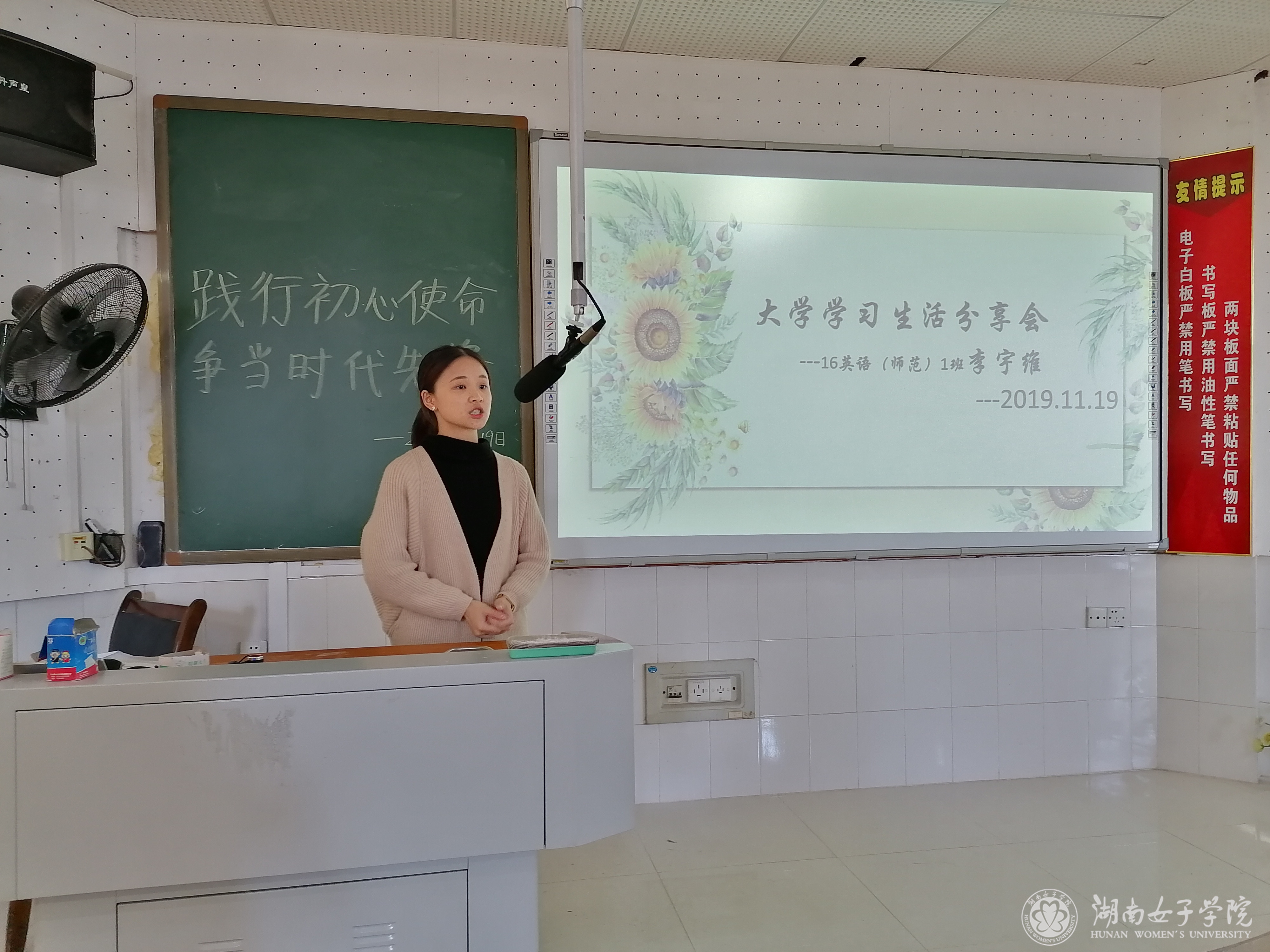 本网讯 (文学院 杨思佳 周屿)为深入贯彻“不忘初心、牢记使命”主题教育,进一步增强党员同志的使命感,发挥党员同志的先锋模范作用,11月18日-22日,文学院学生第一党支部全体党员走进18级英语专业各班级团支部开展“践行初心使命,争当时代先锋”主题党日活动。