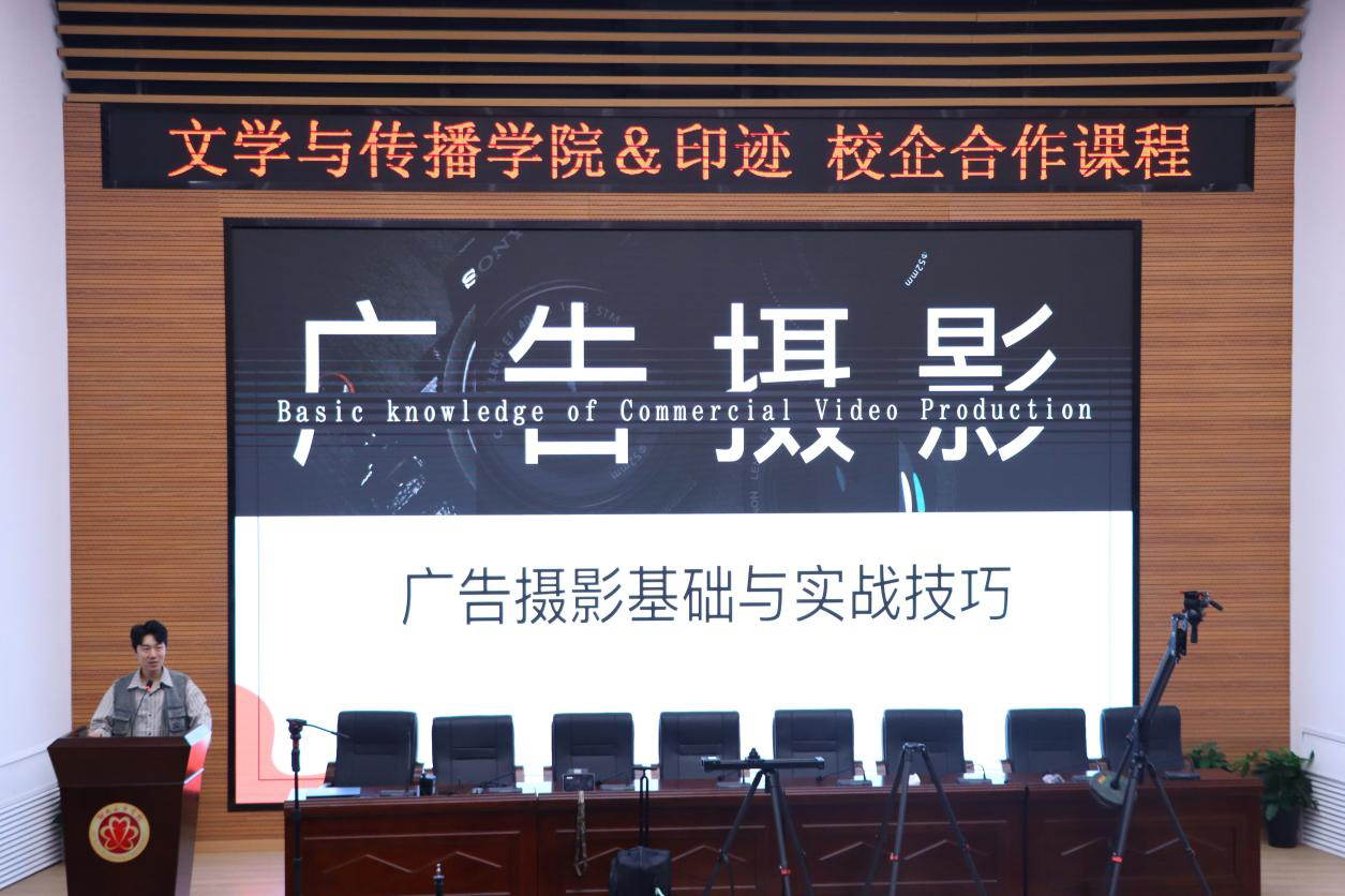 本网讯(文学与传播学院 李明哲 左靓)为加强校企合作,提升传媒系学生专业素养,10月29日,文学与传播学院与“印迹”开展校企合作课程讲座,并邀请印迹中国区负责人李迈和影视广告摄影师、印迹签约讲师张鋆主讲。文传院副院长白蓝、邹远志及传媒系教师和学生们参加了此次讲座。