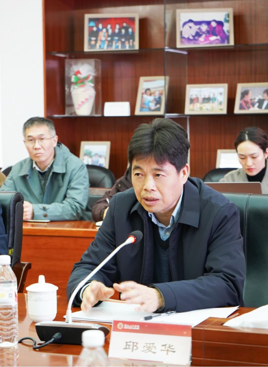 段美娟对邱爱华一行人的到来表示诚挚的欢迎,随后介绍了学校办学历程与发展现状,重点介绍了近年来聚焦“一老一小一女性一家庭一社区”特色领域取得的阶段成果。她指出,学校持续深化国际传播实践,在跨境教育合作、学术交流平台搭建等领域形成显著优势,为讲好中国故事、传播湖湘文化贡献了独特力量。邱爱华对我校传播中心的建设前期工作给予了高度评价,并提出指导性建议:一是强化外事资源赋能,推动外事交流与学科建设、人才培养深度融合;二是服务国家战略需求,以时尚文化为载体,讲好湖南故事,提升国际传播影响力。省外事办将继续共享国际渠道资源,为学校高质量发展提供坚实支撑。