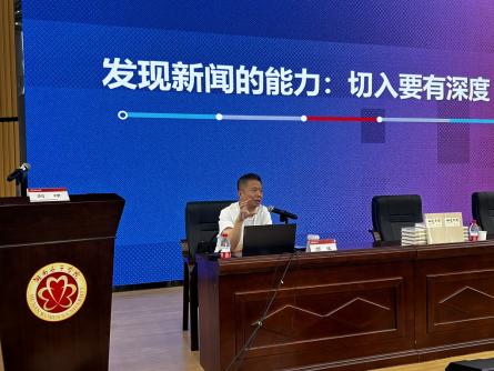 颜斌副总编辑结合他硕果累累的获奖经历和丰富的实战经验,从发现新闻的能力、表现新闻的能力、实现新闻的能力等三个方面,通过中国新闻奖获奖作品《苗寨十八变》、《十八洞村龙金彪的Vlog | 脱贫之后》、《村里最远的一户》、《湖湘英烈》等为文传院师生带来了一场思想引领和职业生涯导航的专业分享,尤其是对于未来即将走向新闻传播一线的同学们来说,恰逢其时,意义非凡。我们正处在一个数智技术浪潮奔涌、传播格局剧变的时代,作为未来的新闻人,我们必须具备这些核心能力,才能不负时代、担当使命。