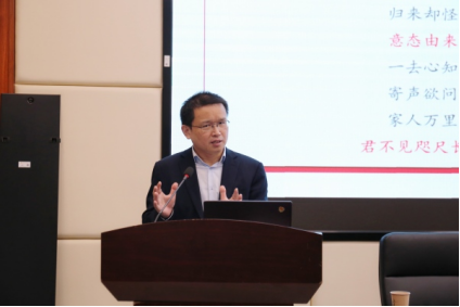 吕双伟教授从古典诗词的当代价值切入,选取具有代表性的唐宋咏史怀古诗作,综合运用知人论世、典故阐释与立意对比等研究方法,系统剖析了此类诗词所蕴含的五大思想主题,并归纳其艺术特质及其在中华优秀传统文化传承中的重要意义。讲授过程中,吕教授引经据典,融通古今文论观点,引导学生从感性体悟迈向理性思辨;同时注重启发教学,以循循善诱的方式提示学生关注文体流变与文本细节,为学生在古代文学领域的深入探索提供了切实可行的学术指引。