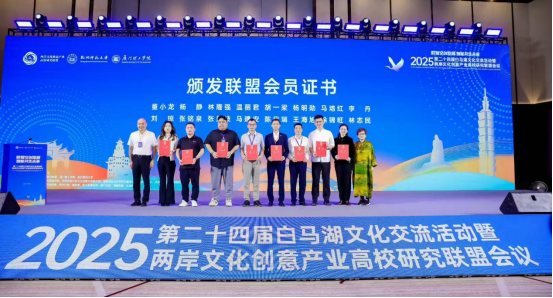 在主旨演讲环节,台湾艺术大学原校长黄光男、浙江传媒学院副校长姚争教授等六位专家学者,分别从中华文化传承、数智非遗实践、大视听发展方向、文创"元创"概念、AI技术应用等角度,深入探讨了数智时代文创发展的新理念与新路径。当日下午举行的两岸文创产业创新实践案例研讨会及圆桌对话,聚焦"高校文创人才培养的现状痛点与实践破局",与会代表就产教融合、人才培养等议题展开深入交流。在闭幕式上,两岸文化创意产业高校研究联盟发布了多项合作成果,并举行了新增会员证书颁发仪式。联盟副理事长夏洁秋宣读了《白马湖-厦门宣言》,联盟理事长范周在总结发言中表示,未来将继续推动两岸文创领域的“技术共研、成果共享、人才共育”。