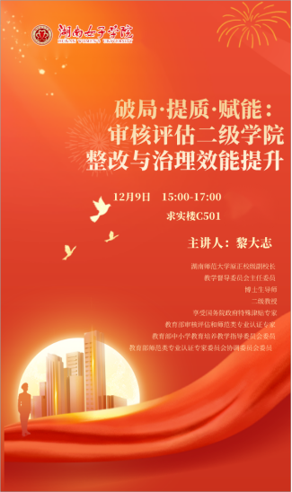 讲座主题:破局·提质·赋能:审核评估二级学院整改与治理效能提升